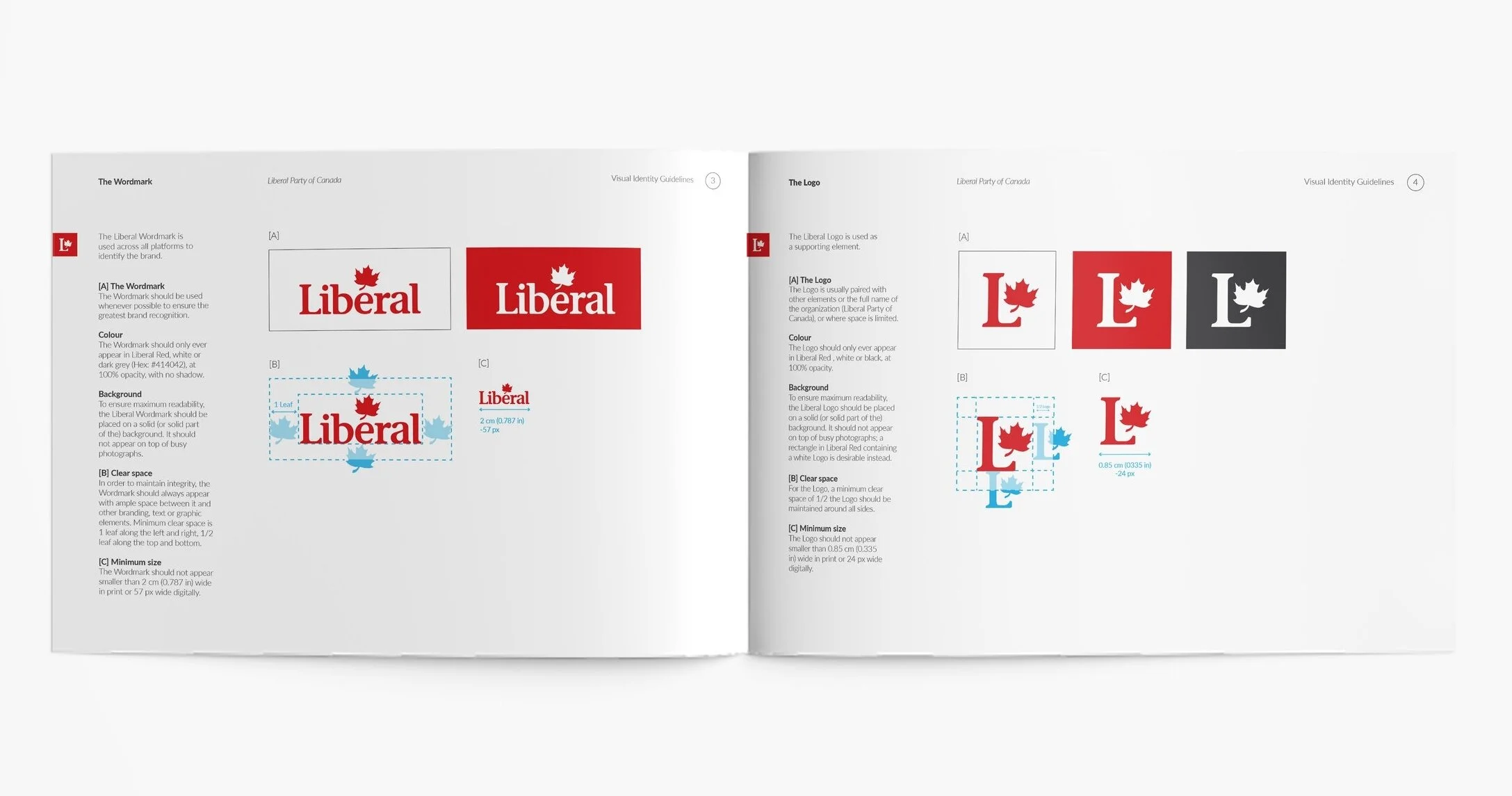 Having a book of visual identity guidelines available is extremely important for the party. Ridings and electoral district associations across Canada must follow these guides in order to produce anything branded with the Liberal logo on social media, direct mail, event coordination, etc.