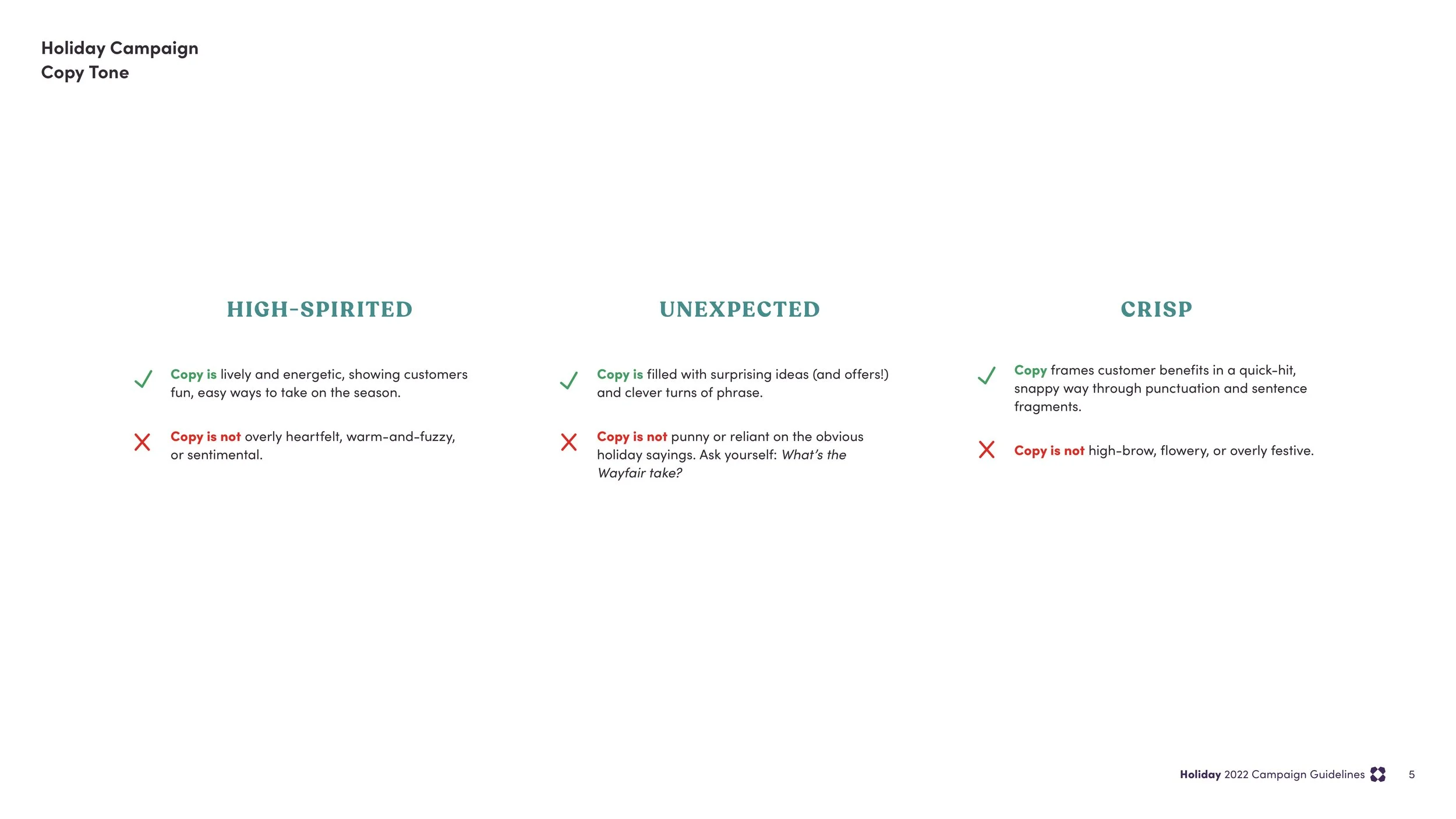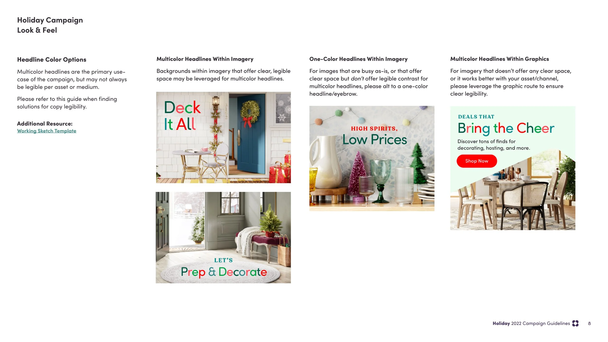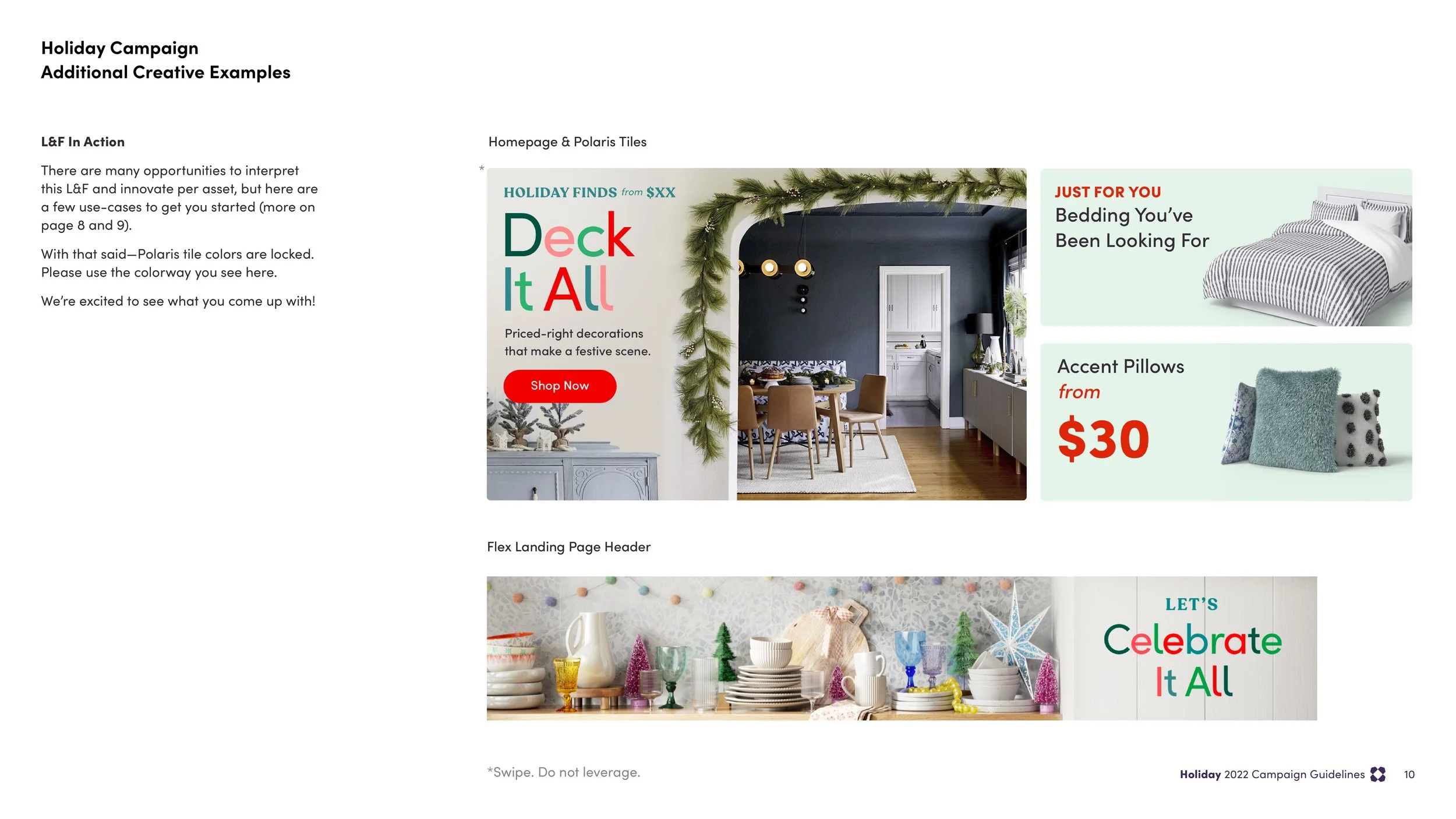 For Wayfair’s 2022 holiday season, the challenge was delivering a cohesive omni-channel campaign while adapting to shifting merchandising priorities and fast-moving marketing needs. I led the creative strategy and execution across two phases—October and November/December—developing distinct visual directions through 2D and 3D photography, dynamic imagery, and modular content systems. I also art directed the holiday photoshoot on set, ensuring visuals captured the tone and product focus needed to anchor the campaign. The result was a responsive, scalable creative framework that aligned seamlessly across all platforms and touchpoints.