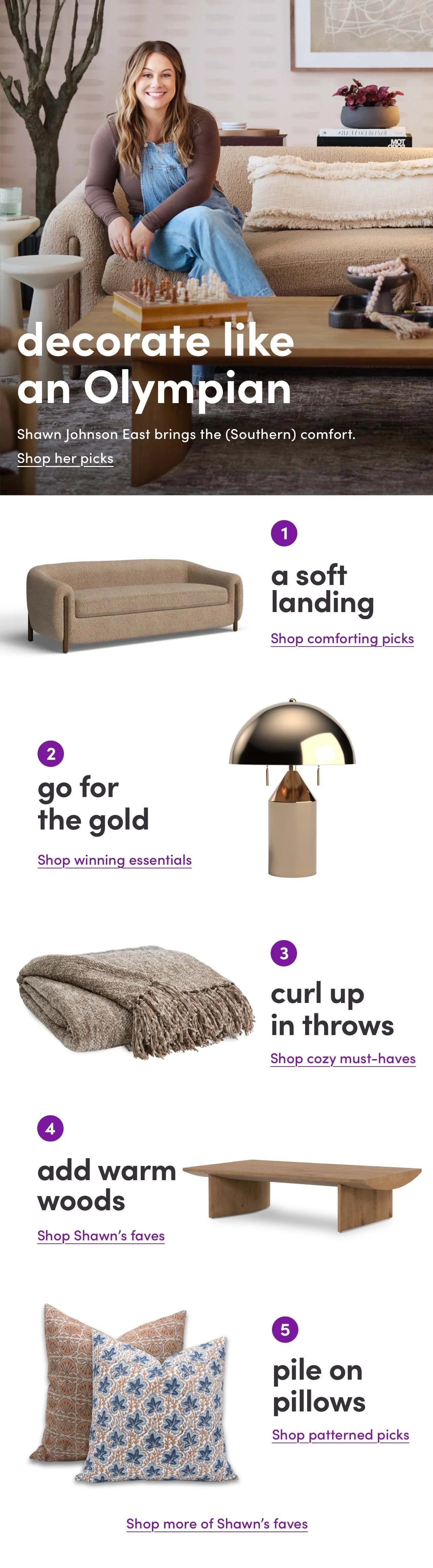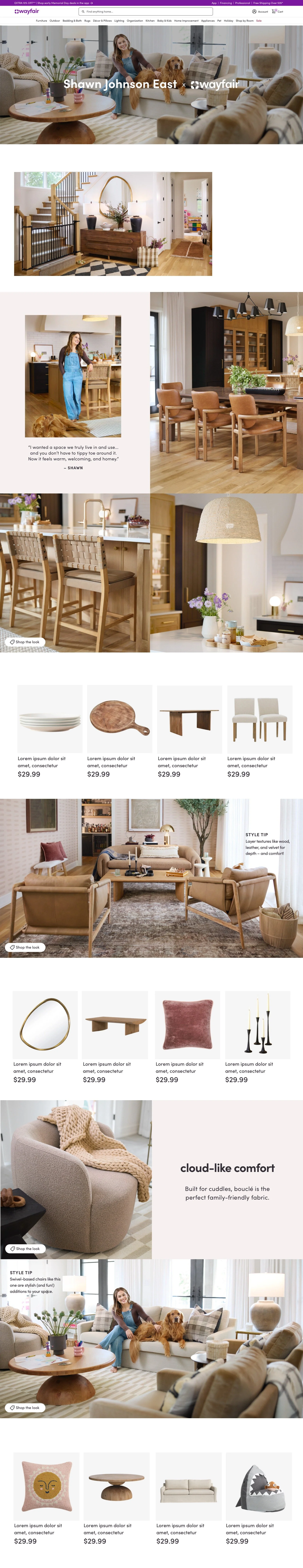 When Wayfair teamed with Shawn Johnson to create “East House to Home,” the goal was to translate her design philosophy into a narrative that resonated with everyday homebuyers. I led the creative direction and storytelling strategy from concept through activation—shaping visuals across digital, social, and site, and consulting on the photoshoot to maintain cohesion with brand and partner vision. The campaign blended lifestyle storytelling with shoppable experiences, positioning Wayfair as the destination for effortless home transformation while authentically showcasing Shawn’s personal aesthetic.